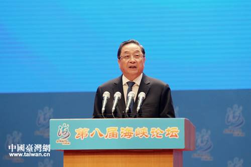中共中央政治局常委、全国政协主席俞正声出席第八届海峡论坛大会并致辞。(中国台湾网 于斯文 摄)