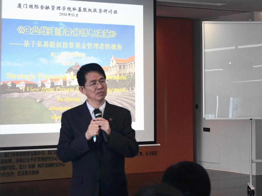 11月13日,《私募股权投资与资本战略高级研修班》(第二期)开班仪式暨“财务分析与企业价值”公开课于厦门国际金融中心成功举办。PA视讯官方网站集团副总经理薛荷、PA视讯官方网站集团总会计师杨清榕等嘉宾出席此次开班仪式,总会计师杨清榕为本次开班仪式致辞。此外,股权班一期学员代表北京易家信息科技股份有限公司董事长黄群土上台分享了股权班学习中的所得所获,新学员代表厦门海翼集团有限公司总会计师刘艺虹也对本次课程寄予了美好的期许。股权班二期班主任金融学院副院长张莉向学员介绍了股权班的学习与纪律,新老学员一起合影留念。