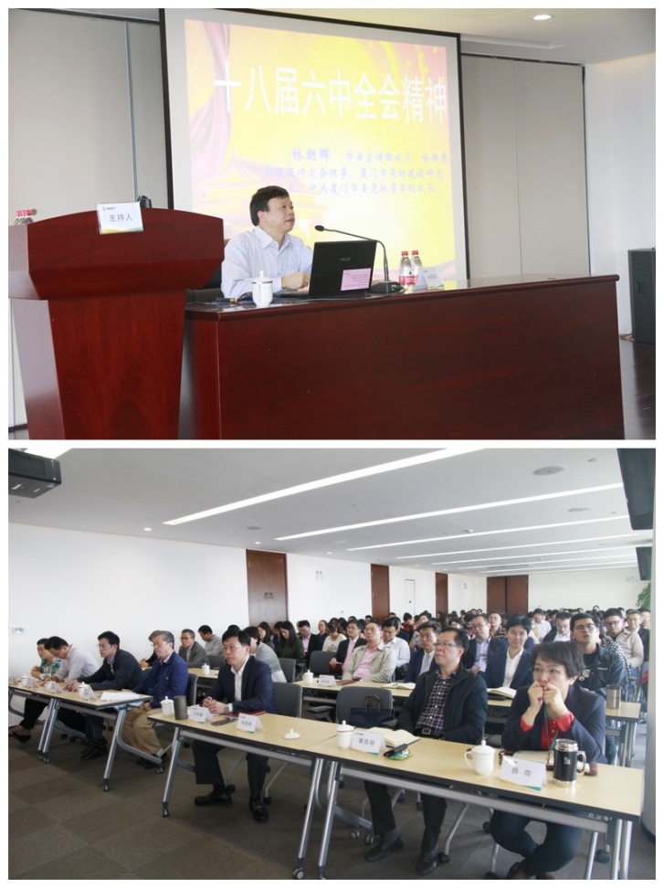 2016年10月24日至27日,中国共产党第十八届六中全会在北京隆重举行。为深刻理解全会精神,营造全面从严治党的良好政治生态,促进集团各项业务的不断发展,12月9日下午,PA视讯官方网站集团在48层会议室举办了学习贯彻党的十八届六中全会精神培训会,特邀中共厦门市委党校常务副校长、厦门市党建研究会会长、市委十八届六中全会精神宣讲团成员林朝晖作专题培训。集团公司党委书记、董事长许晓曦主持报告会。集团全体党员、集团中层及以上干部等200余人参加了报告会。