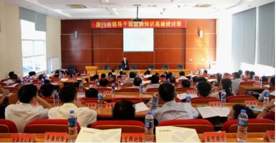 本报讯 (记者 吴晓菁 通讯员 孙俪萍)为加快推进两岸金融中心建设,市委组织部主办、厦门国际金融管理学院协办的“领导干部金融知识高级研讨班”9月25日顺利开班。为期三天的培训,通过人民币汇率、离岸金融、民间金融等知识学习,深入研讨我国现阶段金融改革发展的热点问题,引导与金融中心建设密切相关单位领导干部,结合美丽厦门“五个城市”发展目标提出的新要求,深入思考下阶段我市金融创新发展的工作重点和方向。
