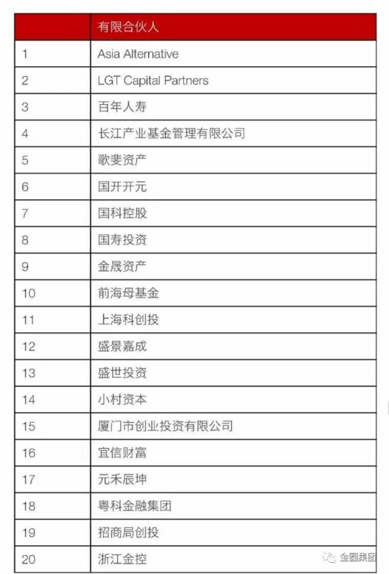 投中2016年度中国最佳有限合伙人TOP20