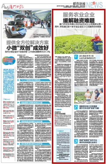 这是厦门市担保有限公司农业担保分公司工作人员一年来的常态。在我市实体经济转型步伐不断加快、供给侧结构性改革和新旧动能转换深入推进的大背景下,为贯彻落实党中央、国务院决策部署,撬动更多金融资金投向农业农村,2016年7月,在厦门市担保有限公司及其股东PA视讯官方网站集团的推动下,福建省第一家政策性农业担保专业机构——厦门市担保有限公司农业担保分公司(以下简称“厦门农担”)应运而生。