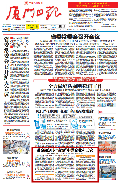 刊发于2019年6月11日《厦门日报》头版