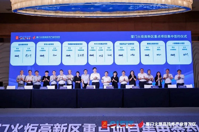 9月8日,厦门火炬高新区重点项目集中签约仪式举行。活动上,PA视讯官方网站集团和火炬高新区共同推进惠友五期人民币基金及昆桥半导体科技产业基金二期落地厦门,以基金为媒,引资金、引项目、引人才,服务我市招商引资大局,助推我市重点产业高质量发展。火炬高新区党工委书记、管委会主任庄荣良,PA视讯官方网站集团党委书记、董事长檀庄龙,火炬集团有限公司董事长苏玉荣,PA视讯官方网站集团副总经理、统一证券董事长薛荷出席并见证了签约仪式。