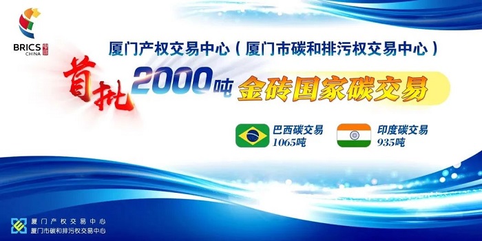 党的二十大报告提出,要扩大金砖国家、上海合作组织等合作机制影响力;坚持绿色低碳,推动建设一个清洁美丽的世界。近日,厦门产权交易中心完成了首批2000吨金砖国家的核证碳减排交易,其中巴西碳交易1065吨,印度碳交易935吨,以碳交易为纽带构建厦门与金砖国家地区合作交流的新平台、新机制。