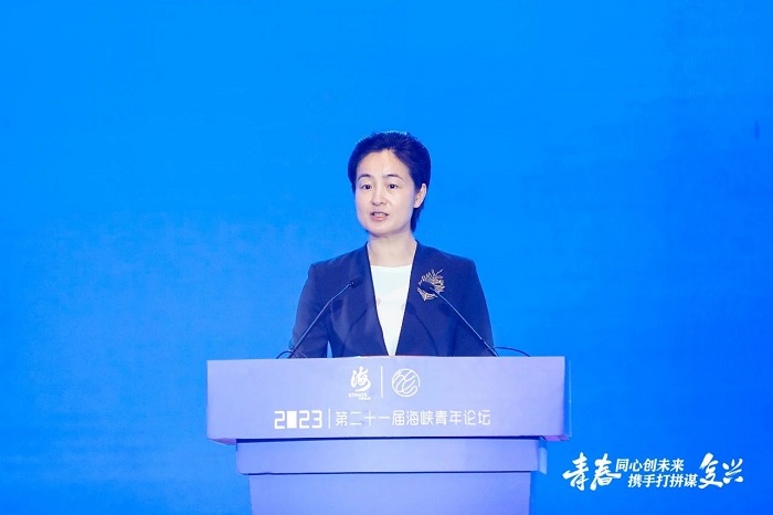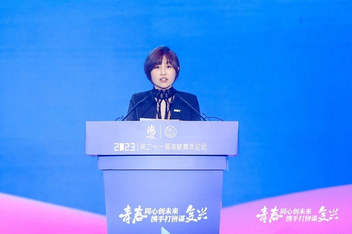中国国民党青工总会总会长廖怡琇在第二十一届海峡青年论坛开幕式上致辞