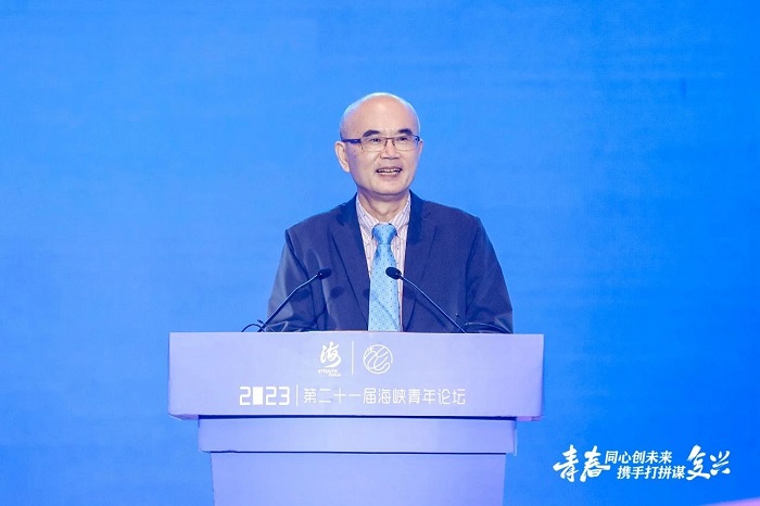 台湾中华青年交流协会理事长黄荣护在第二十一届海峡青年论坛开幕式上致辞