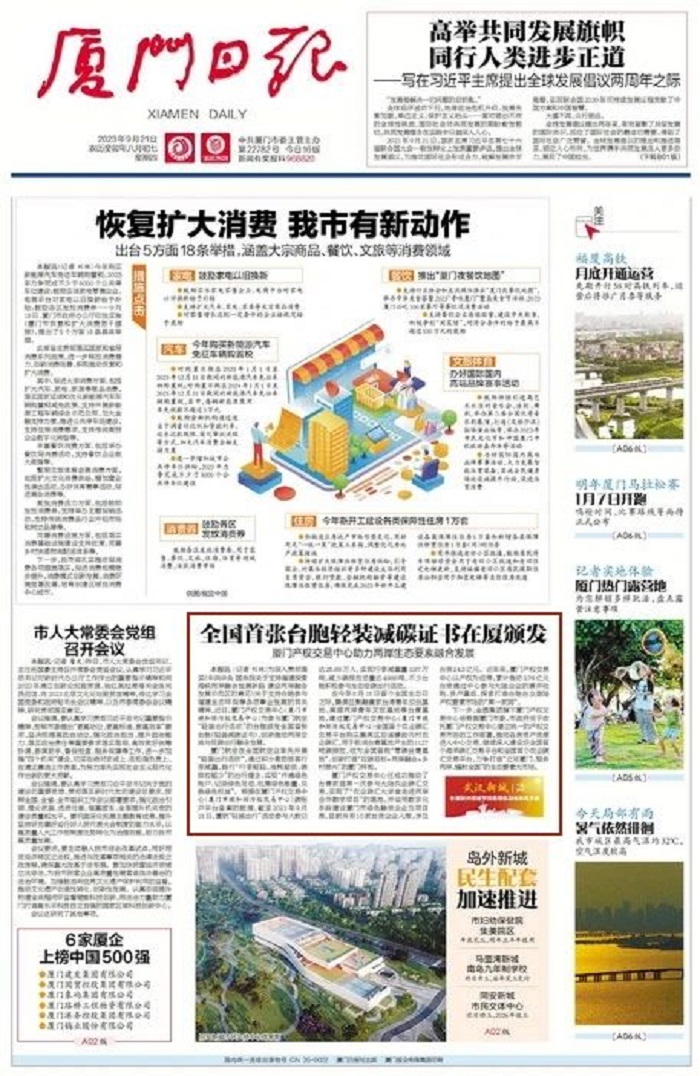 在今年8月15日首个全国生态日之际,集美区聚融壹家台湾青年双创基地、黑猫两岸青年文旅基地等台青基地,通过购买厦门产权交易中心(厦门市碳和排污权交易中心)全国首个农业碳汇交易平台购买集美区后溪镇岩内村农业碳汇,用于抵消台青基地产生的1127吨碳排放,成为全国首批“零碳台青基地”,创新打造“双碳目标+两岸融合+乡村振兴”的厦门样板。