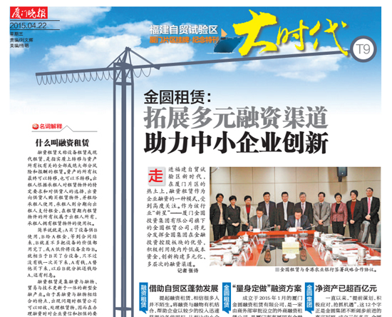 走进福建自贸试验区新时代,在厦门片区的热土上,融资租赁作为企业融资的一种模式,受...