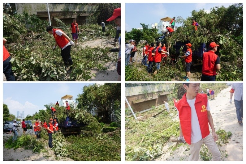 当天下午,部分志愿者还会同置业公司和外部单位,对集团大楼周边绿化进行修复,对倒伏树木的进行固定工作,有效地协助了大楼周边环境的复原。