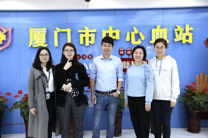 志愿者们到厦门市中心血站进行集中献血