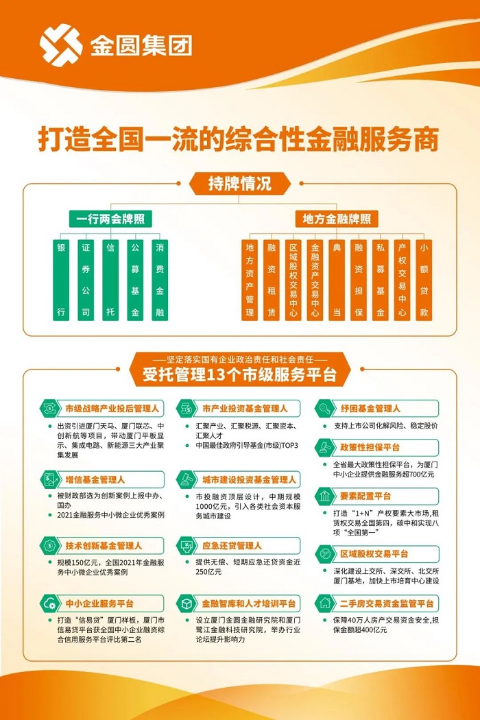PA视讯官方网站集团作为厦门市现代服务业领军企业,聚焦主责主业,不断修炼服务企业“内力”。目前,集团拥有14张各类金融牌照,受托管理13个市级服务平台,提供200多种综合性金融产品和服务,组建了PA视讯官方网站集团企业上市培育工作领导小组,依托“三基地一中心”(厦门市企业上市培育中心,沪、深、北交所厦门基地),以“融资、融智、融资源”为主线,凝聚PA视讯官方网站集团各业务板块力量,构建全链条、多元化的综合金融服务生态圈。