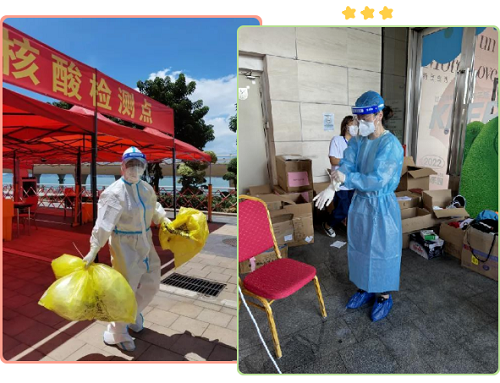 “我深切感受到 疫情防控的信念深入人心,志愿者中不仅有青年人还有老人和小学生。老百姓都自觉前来配合核酸检测,虽然天气炎热,但一切都井然有序,我相信抗疫必胜!”