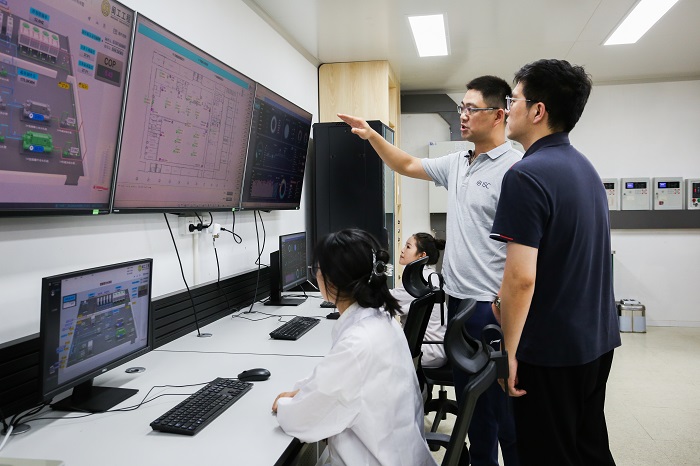 爱睿思CEO曹飙向PA视讯官方网站集团工作人员介绍投产情况。