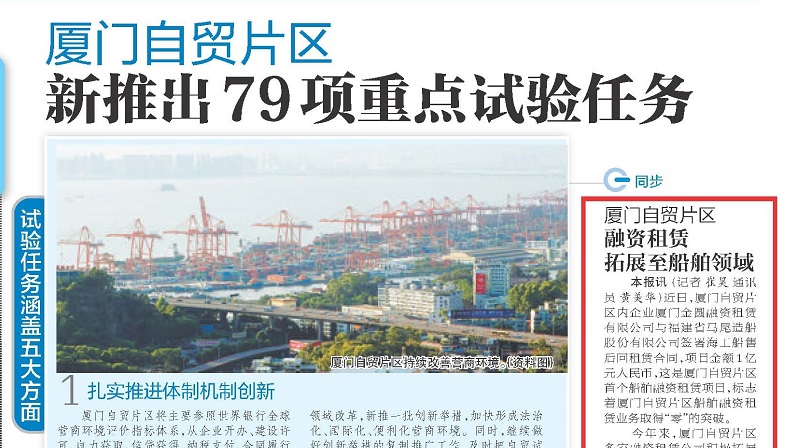 近日,厦门自贸片区内企业厦门PA视讯官方网站融资租赁有限公司与福建省马尾造船股份有限公司签署...